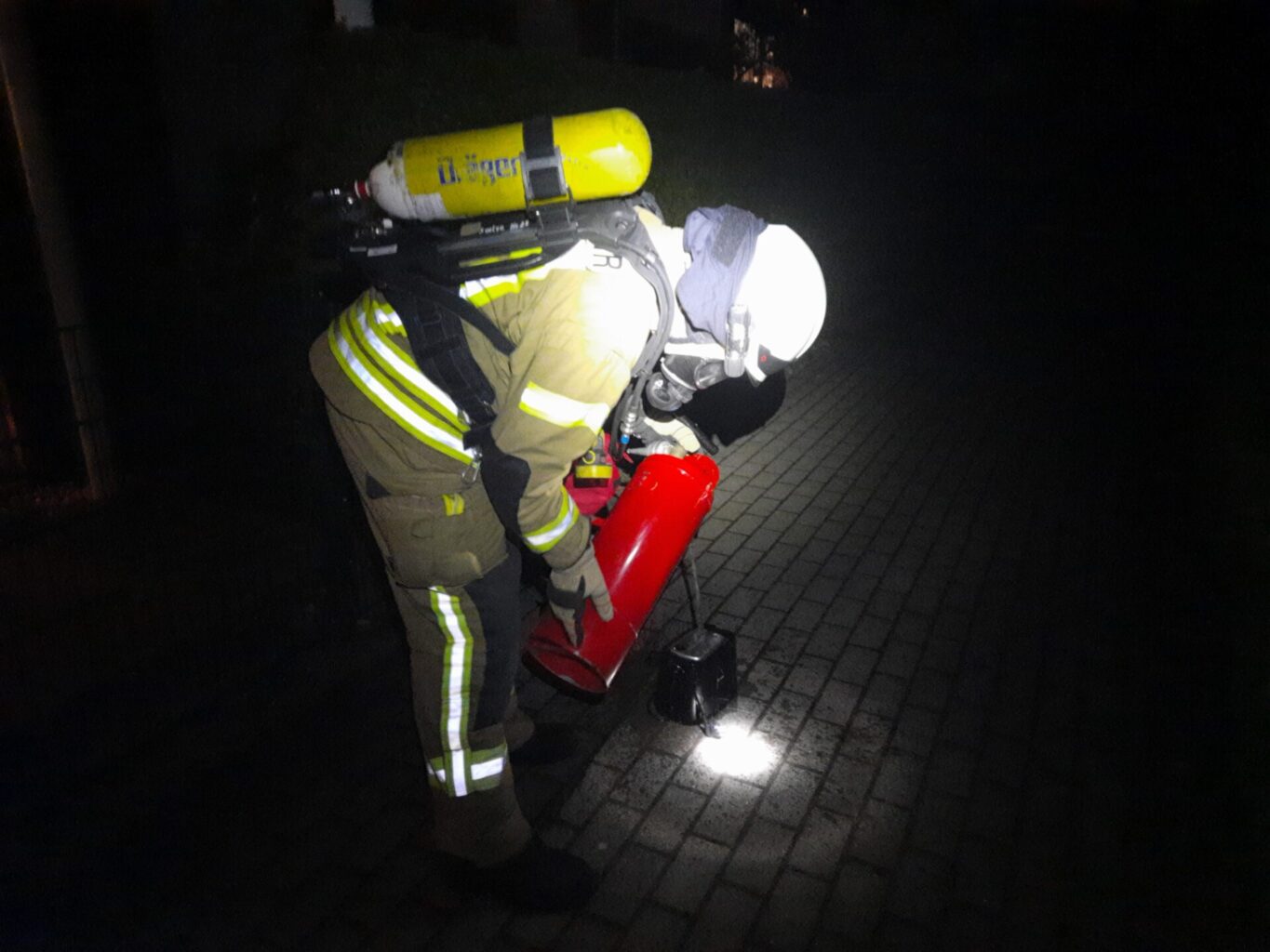 Angriffstrupp geht unter Atemschutz in die Wohnung