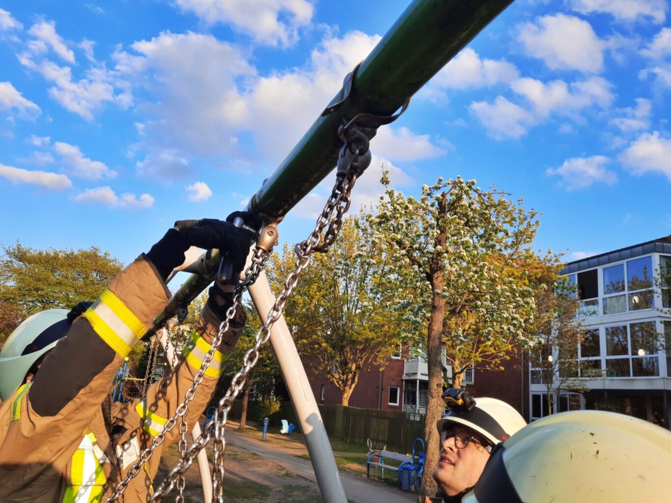Mit der Rettungsschere wurde die Schaukel aufgeschnitten um das Kind zu befreien. Foto: Feuerwehr Seelze