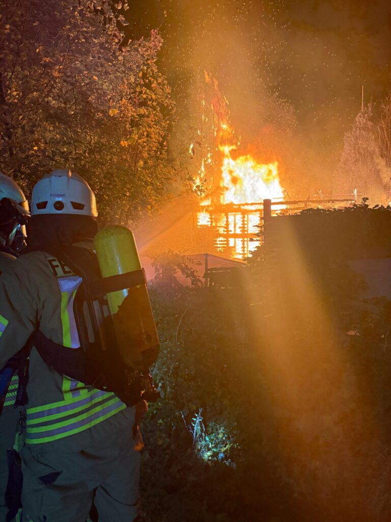 Gartenlaubenbrand sorgt für nächtlichen Einsatz der Feuerwehr