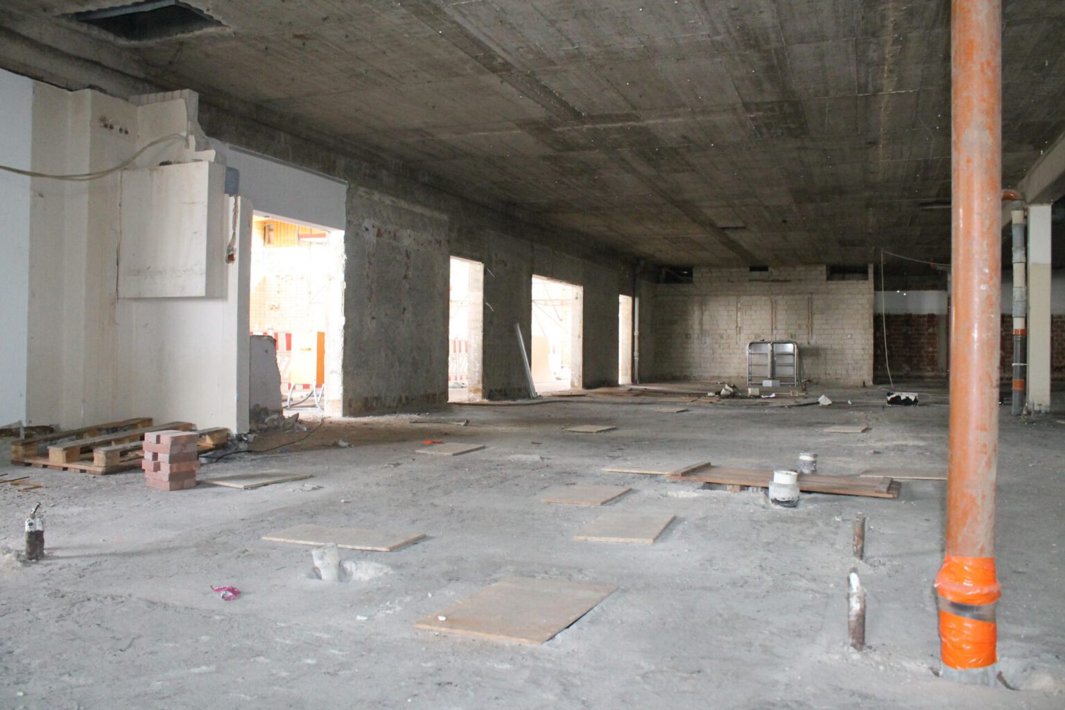 Seit Februar hatten die Beschäftigten der beauftragten Betriebe alle Möbel, Fliesen und darunterliegende Mörtelschichten, sämtliche weiteren Wand- und Bodenoberflächen, alle Fenster und nahezu die gesamte Technik der Schulschwimmhalle demontiert. „Ursprünglich war geplant, dass wir die nicht tragenden Wände erhalten, doch die waren abgängig“, sagte Mark Hömke. Daher seien auch diese Wände, die sich insbesondere in den Bereichen der Umkleiden und Sanitäranlagen befanden, zurückgebaut worden. Auf der anderen Seite könne dadurch in den kommenden ein bis zwei Monaten eine neue Aufteilung der Umkleidebereiche, Duschen und WC-Anlagen geplant und umgesetzt werden. Im Herbst könne dann auch der Einbau der Glasfassade und der ausgewählten Fliesen in Erdtönen beginnen.