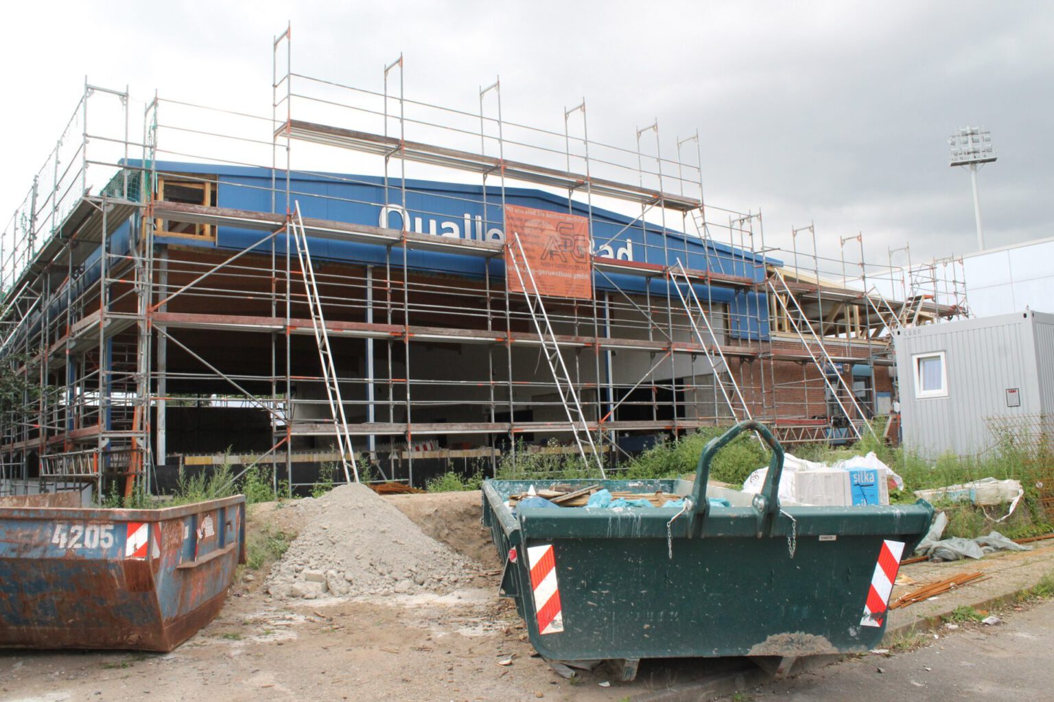 „Wir sind mit dem Rückbau bis auf einige Kleinigkeiten durch und beginnen jetzt mit dem Aufbau“, sagte Bauleiter Mark Hömke von der Planungsgruppe Hildesheim (PGH) als beauftragtes Ingenieurbüro für Bäder- und Sportstättenbau bei einer Begehung der Baustelle. Probleme mit den Abdichtungen in der erst im Jahr 2013 erneuerten Dachkonstruktion, die ansonsten als eines der wenigen vorhandenen Gebäudeteile der Schulschwimmhalle erhalten werden soll, hätten für einige Verzögerungen gesorgt. „Bei Sanierungen im Bestand ist so etwas aber nie auszuschließen“, sagte Claudius Leist vom städtischen Gebäudemanagement. Dennoch liege die Baustelle aktuell gut im Zeitplan, befand Mark Hömke. Dies sah auch Claudia Kahlert, Leiterin der Abteilung Weiterführende Schulen der Stadt Seelze so. Die Stadt Seelze habe durchaus mit zeitlichen Puffern geplant, um möglichen Behinderungen beim Baufortschritt vorzubeugen, doch im Moment sehe es gut aus. Wesentliche Verzögerungen oder größere Lieferengpässe, etwa aufgrund der Corona-Pandemie, gebe es bisher nicht.